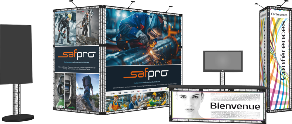 Notre expérience du monde industriel, nous a permis d’être d’une flexibilité à toute épreuve, comme nos structures. Avec celles-ci, vous disposerez un stand moderne et singulier.
